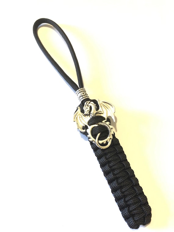 550 Paracord Knife Lanyard Black With Silver Tone Dragon Etsy