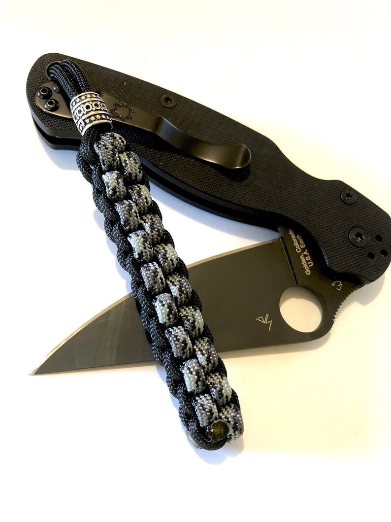 550 Paracord Knife Lanyard With Flamed Titanium Spyderco Bead