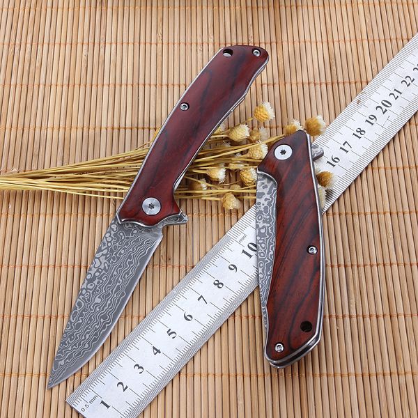 7 Long Damascus Steel Folding Knife With Rose Wood Scale Custom