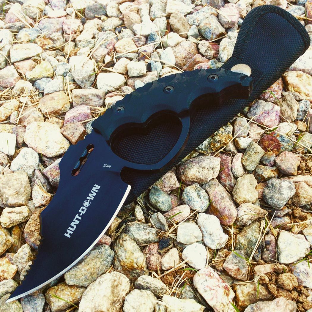 Hunt Down 8 All Black Stainless 7cr17 Steel Hunting Knife Full Tang