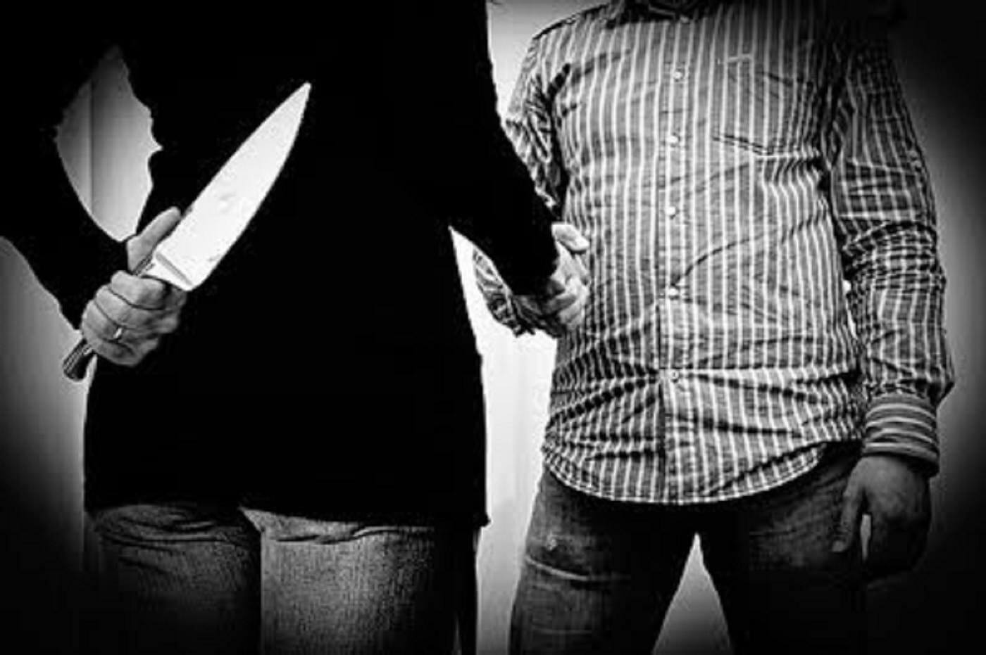 Foto De Namorada Namorado Abraco Segurando Uma Faca Nas Costas E