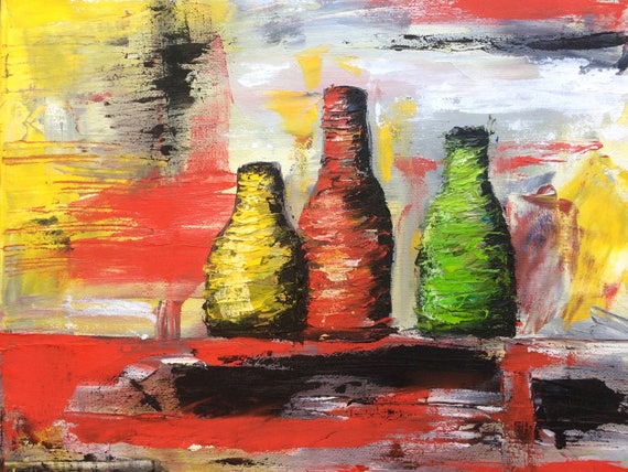 Bottles Abstract Palette Knife Oil Painting Etsy
