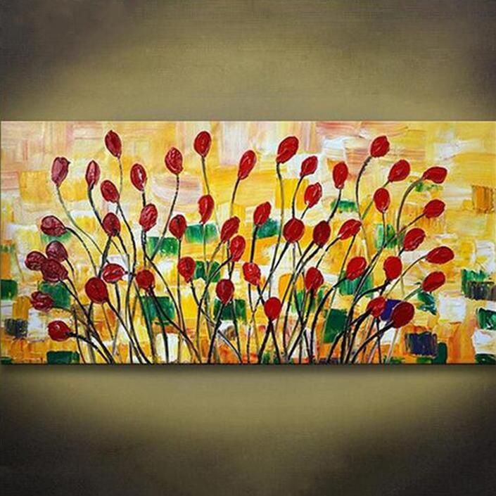 2020 Acrylic Knife Floral Paintings Abstract Red Flower Oil