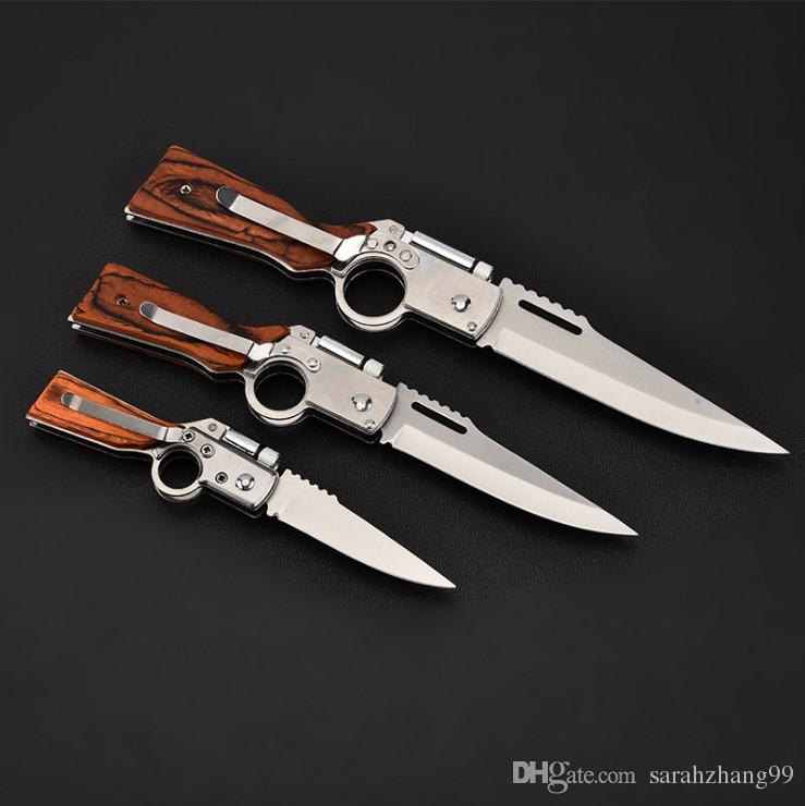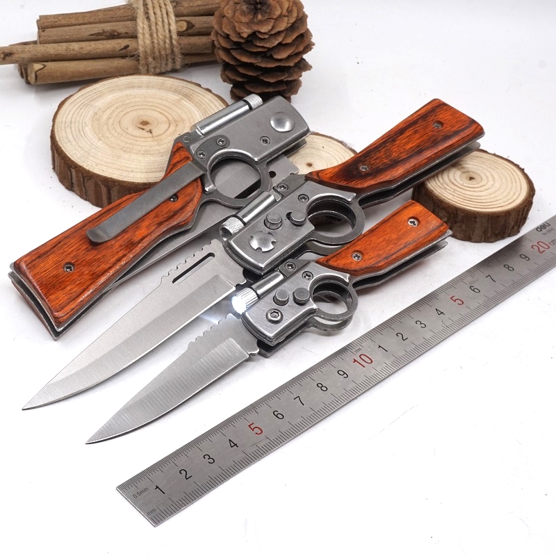 Ak47 Gun Knife Folding Army Pocket Knife 440 Blade Wood Handle