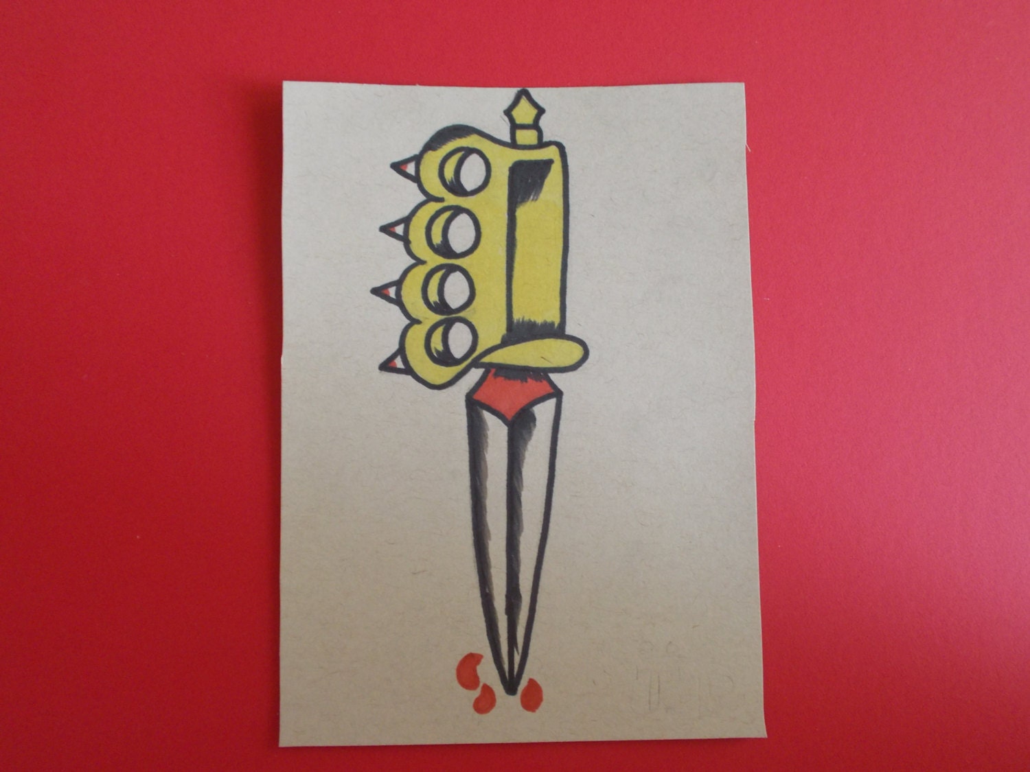 Tattoo Dagger Flash Brass Knucklesamerican Traditional Etsy